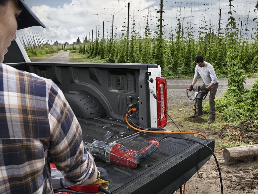 The available power tailgate can be automatically raised and lowered with a simple nudge or press of a button on the key fob. A built-in retractable step offers assistance when climbing in and out of the truck bed.