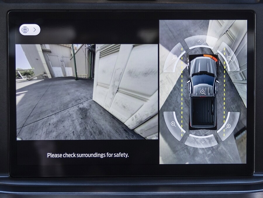 Get a birds-eye view of all sides of your truck visible in the center display screen while towing and backing up.
