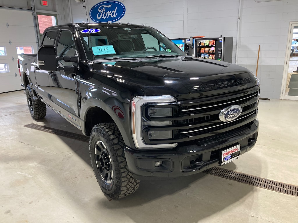Black 2026 Ford F-250SD Platinum 4WD 10-Speed Automatic 6.7L High Output Power Stroke V8 Diesel 4WD, ABS brakes, Alloy wheels, Compass, Electronic Stability Control, Front dual zone A/C, Heated door mirrors, Heated front seats, Heated rear seats, Illuminated entry, Low tire pressure warning, Remote keyless entry, Traction control.