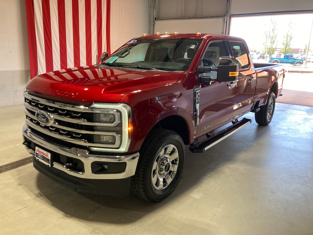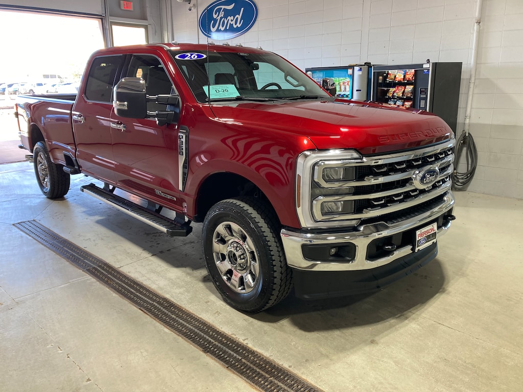 Ruby Red 2026 Ford F-350SD Lariat 4WD 10-Speed Automatic Power Stroke 6.7L V8 DI 32V OHV Turbodiesel 4WD, ABS brakes, Alloy wheels, Compass, Electronic Stability Control, Front dual zone A/C, Heated door mirrors, Heated front seats, Heated rear seats, Illuminated entry, Low tire pressure warning, Remote keyless entry, Traction control. Price includes $1,000 discount requires trade-in of 2014 model year or newer vehicle in good physical & mechanical condition with <150k miles on it.